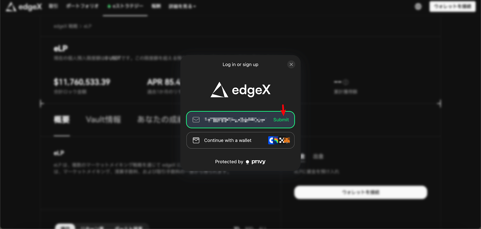 メールアドレスを入力し、「Submit」ボタンをクリック