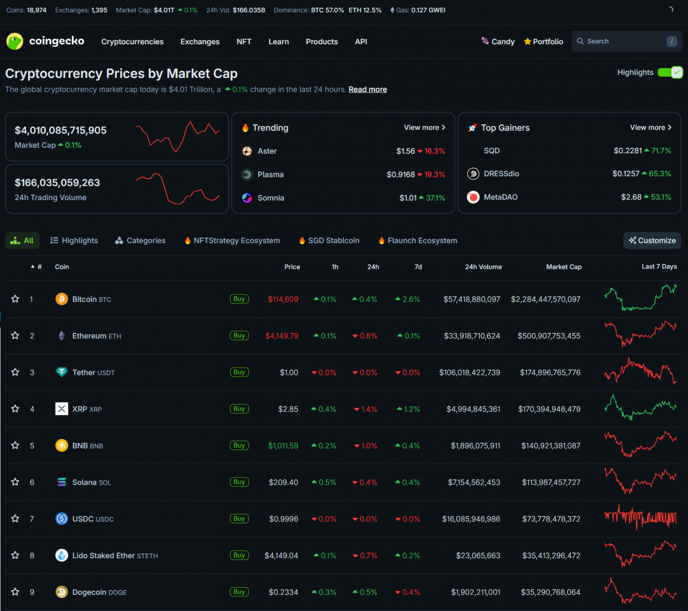 Bitcoin fluctuated throughout the day but held steady around $114,000. Major altcoins traded sideways or saw slight declines. The overall crypto market capitalization is at $4 trillion.